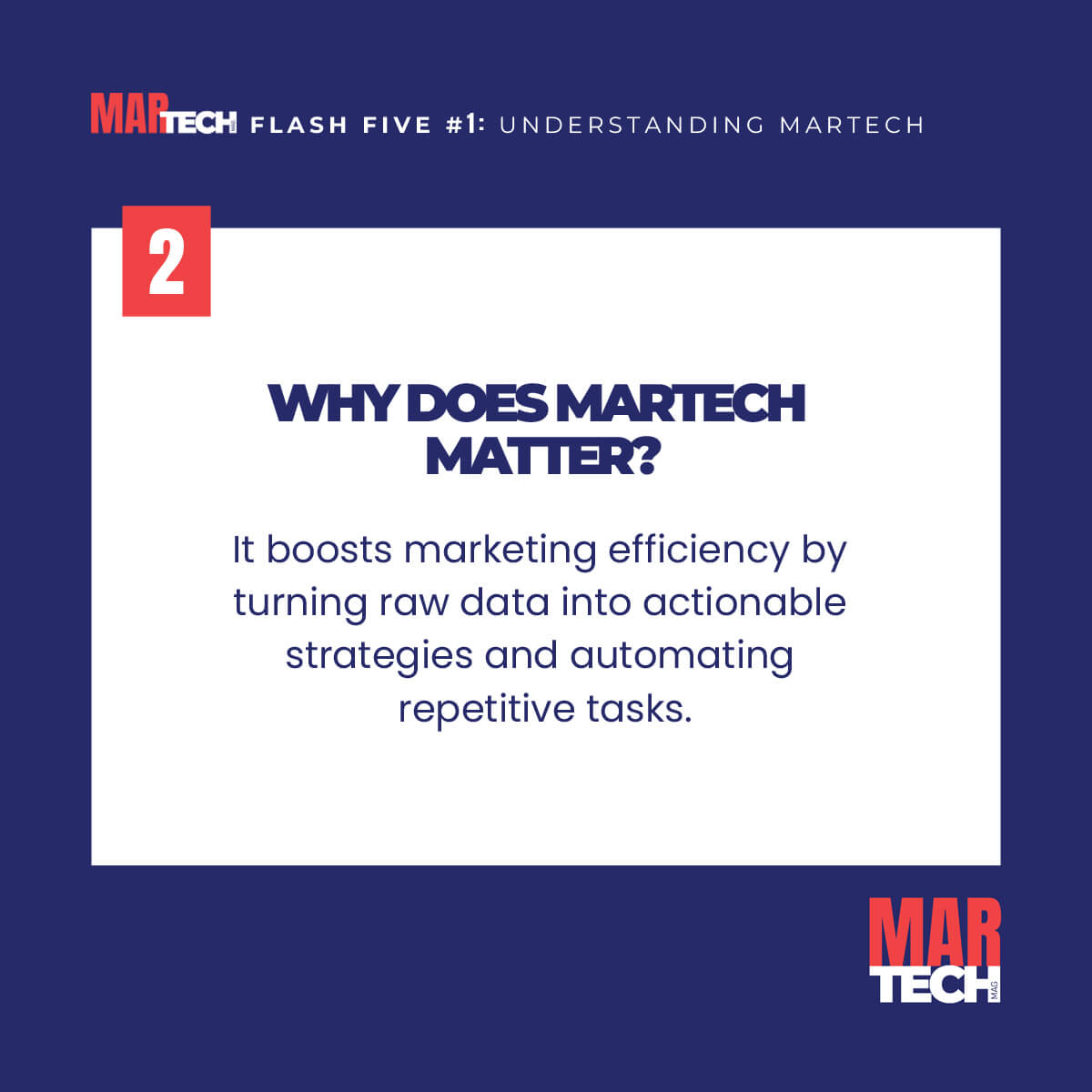 Marketing technology, or MarTech, is transforming the way businesses connect with their audience. In this first Flash Five, get a quick and easy overview of MarTech essentials in just five flashcards.