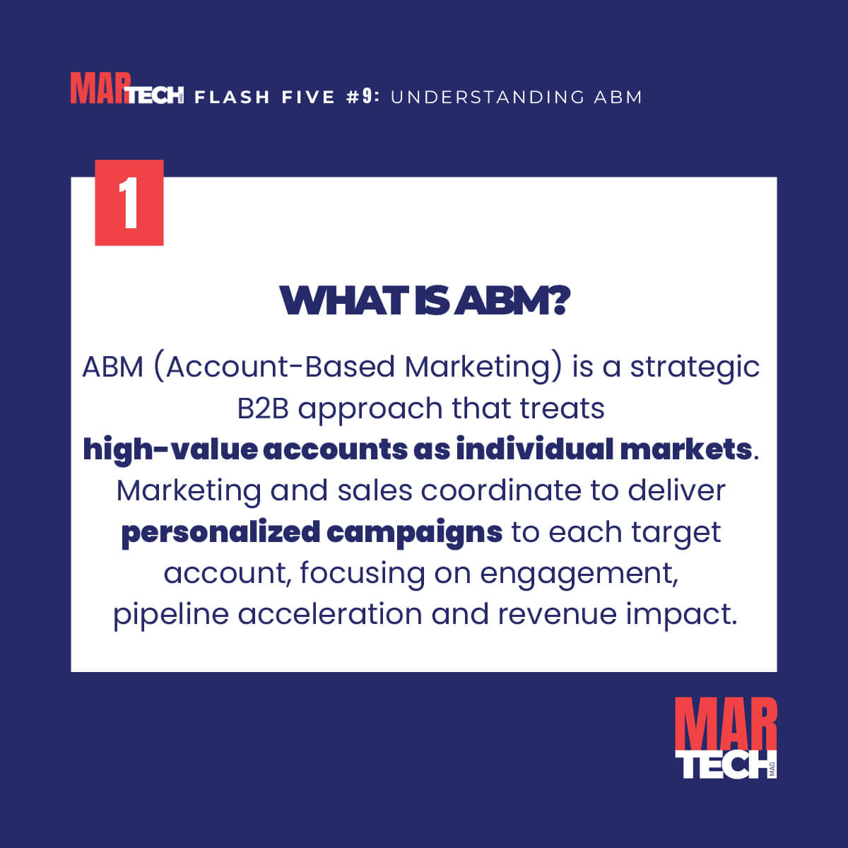 Account-Based Marketing (ABM) focuses on targeting high-value accounts with personalized campaigns instead of broad audiences. In this Flash Five, get a quick overview of the core principles of ABM and how it helps align sales and marketing.